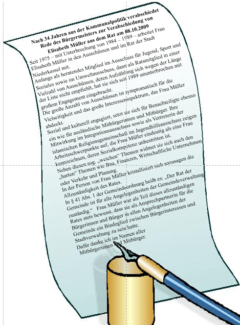 War dann bis 2009 weiter fraktionsloses Ratsmitglied. Hier die Abschiedsrede des Bürgermeisters Walter Essee.