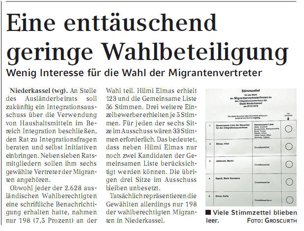 Die letzte Aktivität, die viel Kraft und Zeit gebraucht hat war, Kandidaten zu finden für die Integrationswahlen die am 07.02.2010 in Nordrhein-Westfale
