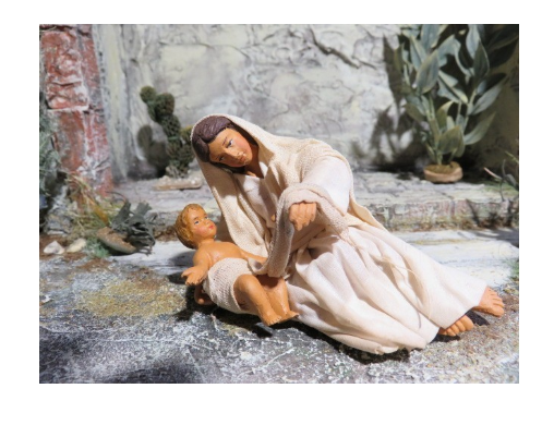 Da machte sich auch Joseph aus Galiläa auf, aus der Stadt Nazareth, in das jüdische Land der Stadt Davids, die da heißt Bethlehem, weil er aus dem Hause und Geschlecht Davids war, damit er sich schätzen ließe mit Maria seinem vertrauten Weibe, die war schwanger. Und als sie dort waren kam die Zeit, dass sie gebären sollte. Und sie gebar ihren ersten Sohn und wickelte ihn in Windeln und legte ihm in eine Krippe: Denn sie hatten keinen Raum in der Herberge gefunden, und es waren Hirten in derselben Gegend auf dem Felde bei den Hütten, die hüteten des Nachts ihre Schafe.