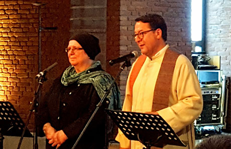 Imamin Rabeya Müller und Pfarrer Hans Mörtter gestalteten die Begegnungsfeier schon zum fünften Mal, Foto: Lothar Wages